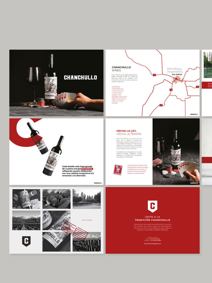 El diseño de este folleto acompañó el lanzamiento del vino y la presentación de la bodega, transmitiendo su identidad y carácter a través de una narrativa visual fuerte y directa. Se trabajó con una estética que combina el espíritu lúdico y desafiante del nombre “Chanchullo” con la tradición vitivinícola de Mendoza, reflejada en mapas, paisajes e imágenes de la producción.